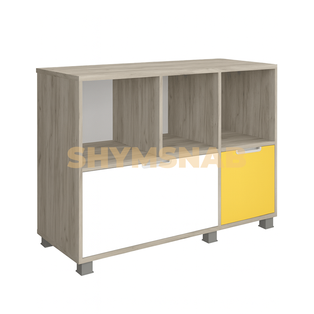Базовый нижний модуль 3х2, выполнен из ЛДСП 22 и 16мм. Шесть опор с регулировкой, компенсируют неровности пола и обеспечивают жесткость конструкции. Встроенная литая ручка без выступающих элементов исключает вероятность травматизма. Модуль имеет два выдвижных нижних ящика и верхние ячейки.