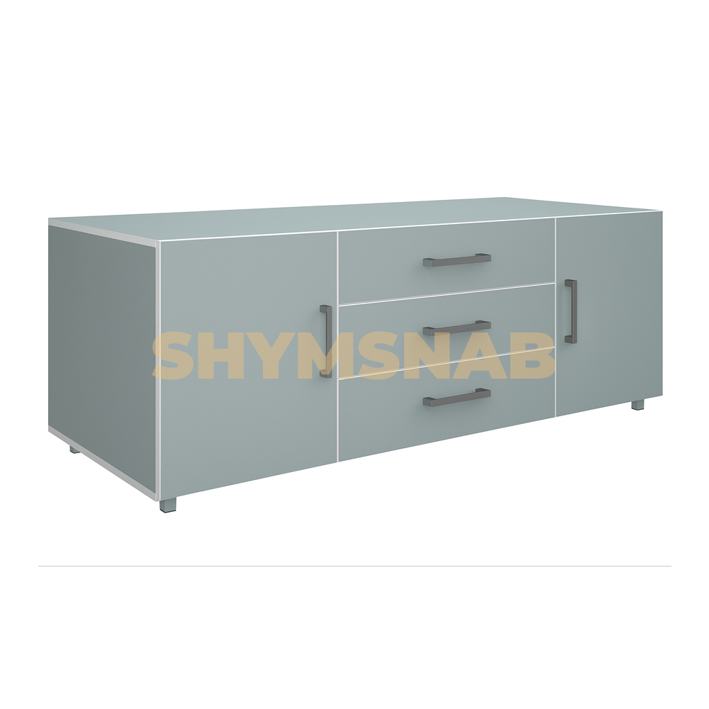 Подвесная тумба с тремя выдвижными ящиками по центру и отделениями с распашной дверью по бокам. Корпус тумбы выполнен из ЛДСП с кромкой в цвет. Три ящика установлены на телескопические направляющие полного выдвижения, оснащены ручками в форме скобы. Отделения с распашными дверьми также оснащены ручками в форме скобы. Подвесная тумба комплектуется к рабочим, лабораторным столам.