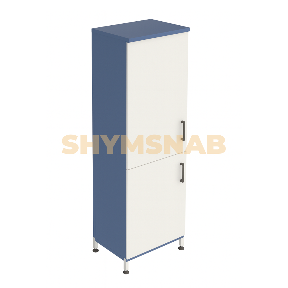 Шкаф для лабораторной посуды установлен на металлический каркас. Каркас окрашен износостойкой, порошковой краской, устойчивой к внешним воздействиям. Шкаф состоит из двух независимых отделений. Оба отсека шкафа, закрыты распашной не прозрачной дверью. Верхние и нижние двери комплектуются замками и шпингалетами. Винты опор изготовлены из стали со стойким покрытием. Снизу винты опор имеют пластиковый подпятник, защищающий пол от повреждений.