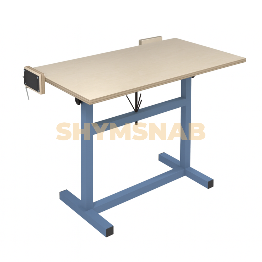 Каркас металлический с регулировкой высоты. Столешница фанера. Комплектуется прижимным механизмом.